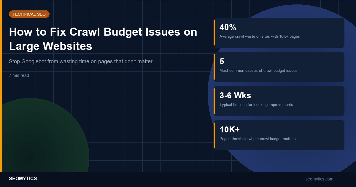 1. Faceted navigation and parameter URLs. An e-commerce site with 1,000 products and 15 filter options can generate millions of URL combinations. Each combination (color=red&size=large&sort=price) creates a technically valid URL that Googlebot will try to crawl. A mid-size retail site I audited in February 2026 had 2.3 million faceted URLs generated from just 4,200 products. Googlebot was spending 73% of its daily crawl budget on filter pages that all showed near-identical product listings.