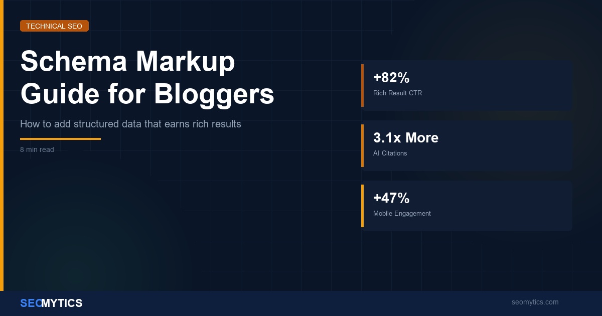 Schema markup is structured data you add to your pages so search engines understand what your content means, not just what it says. For bloggers, this translates directly into rich results that boost click-through rates and visibility.